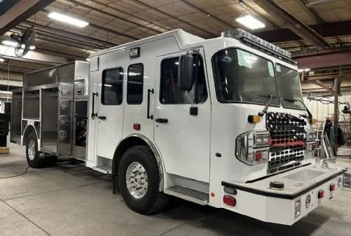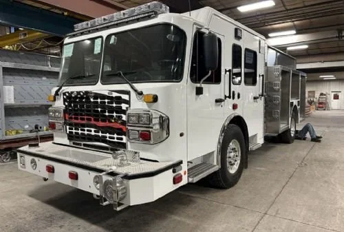 ETA 384 is a 2023 Toyne engine-tanker. It has seating for six firefighters, a 1,500 gallons per minute pump and 1,000 gallon tank. It is used for fire attack and water supply operations. This truck primarily responds to structure fires and fire alarms (commercial and residential). This truck responds out of Station #1