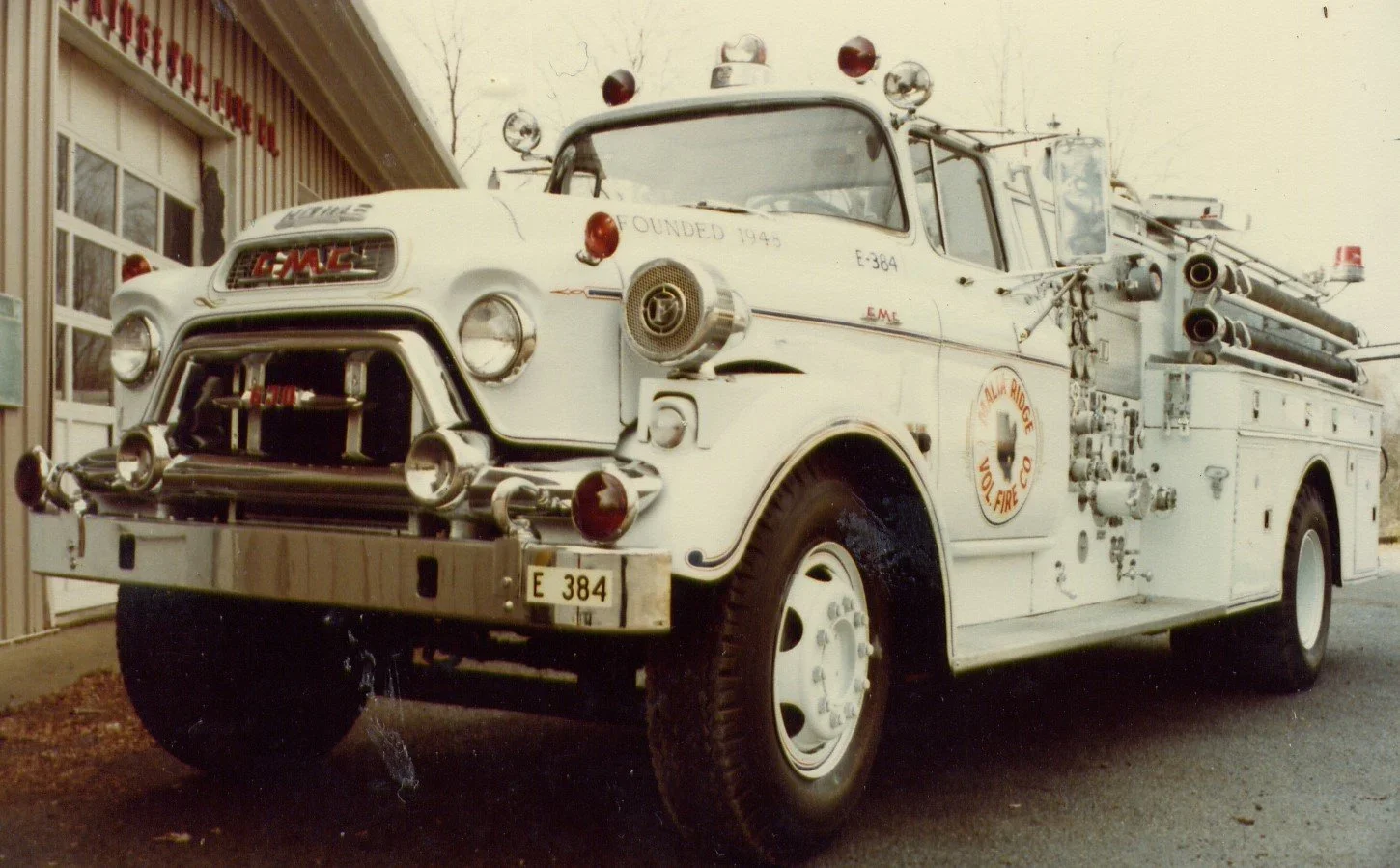 This vehicle replaced E-384, the 1959 GMC that was rolled over on route 9, near the Albany-Saratoga Speedway. This fire truck was in service at the May 10, 1983 meeting with call number E-384. At the April meeting a motion passed to send this vehicle to Roberts Company for diamond plating and repainting. Treasurer record indicate payment August 13, 1985 $5,265.00 to Roberts Body Shop for rebuilding and refinish E-384. This in expensive fire truck served the Malta Ridge Fire company very well for ten years