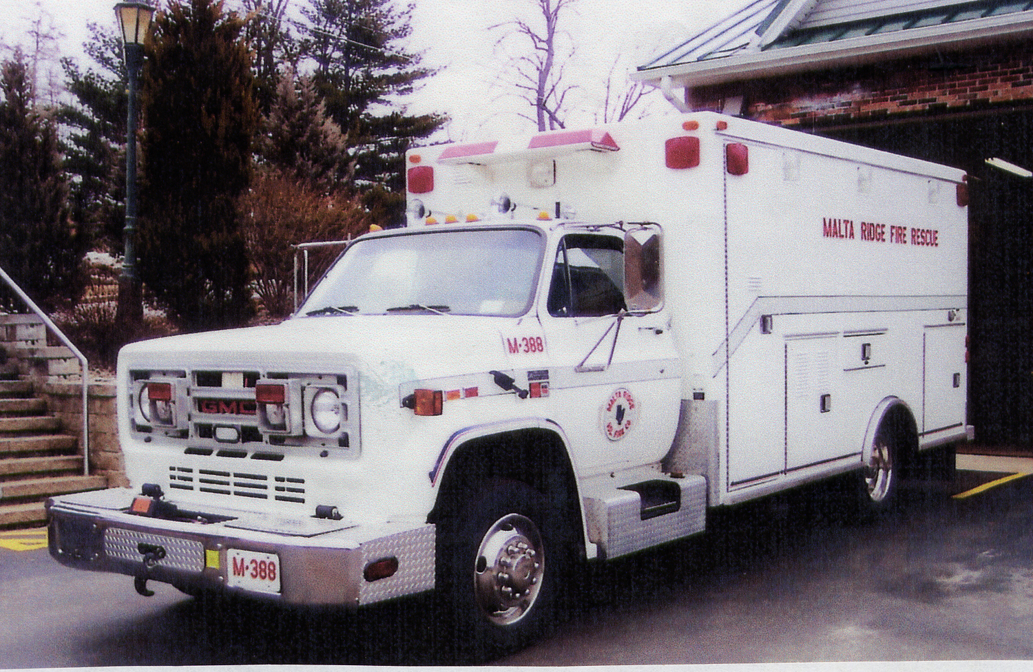 This vehicle is equipped with slide in Pro-trac skid unit for fighting brush fires, 9K winch, 250 gallons of water and 300 feet of booster line. As of 2007 this vehicle is still in service at Malta Ridge Fire Company.