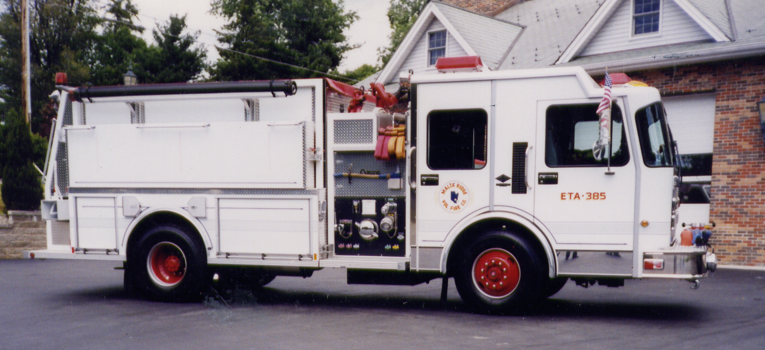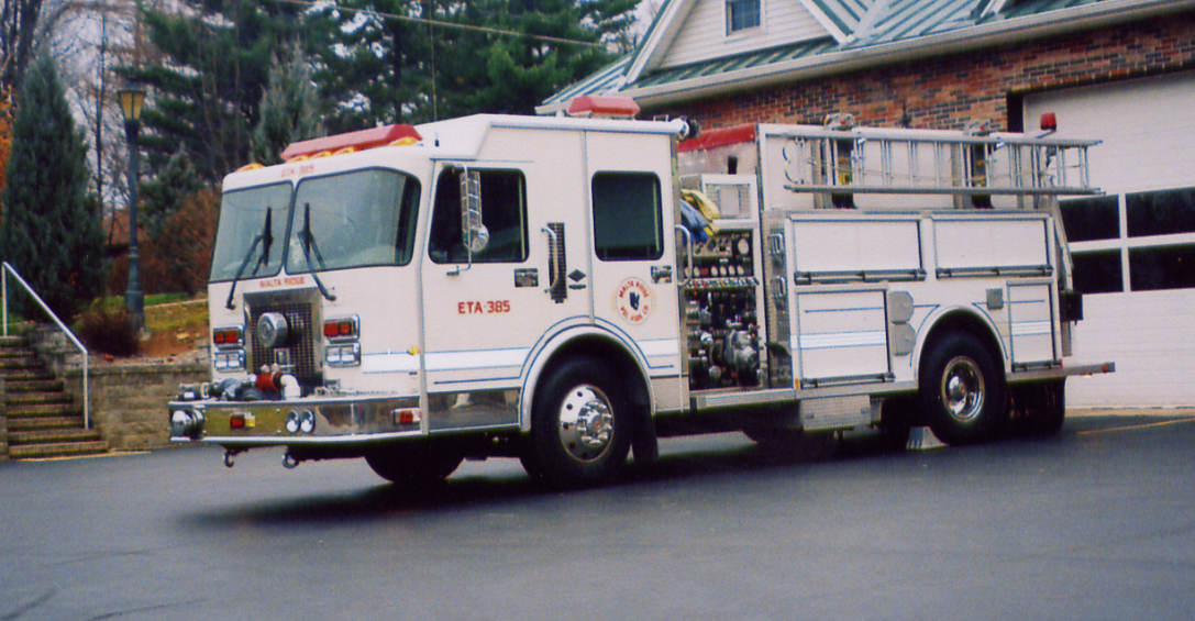 This fire truck was given call number ETA-385. (The new truck will replace the 1981 Ford ETA-385.) This truck is a 1997 Spartan/Central States with 1250 gallon per minute pump, 1500 gallon tank with Tri-dump. As of 2007 the fire company still operates this truck, mostly hauling water and it goes to all motor vehicle accidents