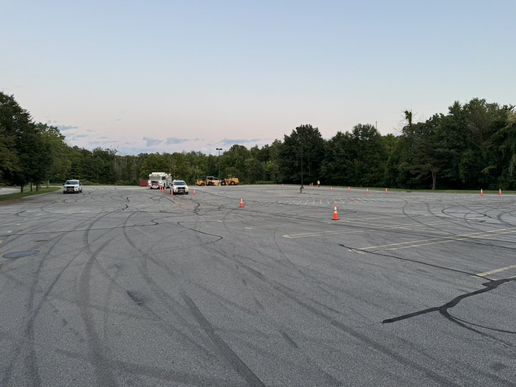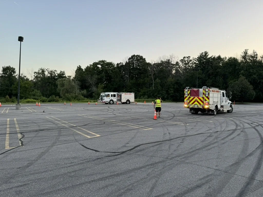 Emergency Vehicle Operations Course or EVOC is a drill that allows newer members learn how to operate and drive fire trucks in a safe manner. This drill also allows drivers to requalify on the trucks as required yearly. This drill is done in an empty parking lot with a cone course set up for the drivers to complete. This drill also allows newer members to learn how to run the fire trucks pump if there is a fire hydrant available. pictured below is an EVOC course.